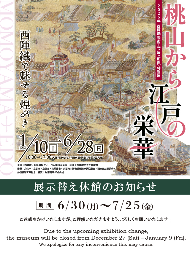 通过西阵织最高水平的编织技术,用细腻的织法将娴熟的笔法表现的淋漓尽致。既如实地再现了原作的画卷,又融入了西阵织的独特创意。